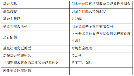 中国经济网络北京,9月26日。今天,Chuangjin Hexin基金宣布Chuangjin Hexin Pharmaceutical Consumentical Stocks增加了对Pijinsong的招募。从2009年9月到2012年4月,Pi Jinsong在国家中国固体医疗准备工作中心和上海Wuxi Appte新药开发公司有限公司的技术开发中工作,并于2012年4月加入Dongguan Securities Co,Ltd.。 2014年8月,他加入了Chuangjin Hexin Fund Management Co,Ltd。,并担任研究人员和投资经理。他目前是基金经理,也是投资经理。 Chuangjin Hexin Pharmaceutical Consumer股票A/C已于2020年12月3日建立。直到2025年9月25日,其今年的收益率为5.27%和4.89%,其YIELD为-49.23%和-50.44%,合并净值为0.5077元和0.4956元。