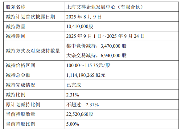 中国经济网北京,9月25日。爱丽丝(688578.SH)昨晚发布了公告,结果是减少了股东共享。在实施该共享计划之前,员工上海Aixiang企业发展中心(有限合伙企业)(9,770,362上海上海Aixiang Pharmaceutical Technology Co,Ltd(来自Thereaand在2023年12月4日自2023年12月4日自2023年12月4日起列出并流通。 Aiyun上海Aixiang共享的股份为1041万股,总减少了11.14亿元人民币;南东·艾扬(Nang Aiyun)共享的分配减少了309万,总降低了3.3亿元人民币。上海Aixiang和Nunong Aiyun减少了他们的股份,以兑现14.45亿元人民币。 2024年10月30日,他释放了宣布减少公司股东结果的提醒和1%的股权表明,从2024年9月30日至2024年10月29日,上海Aixiang和Nunong Aiyun的持股将其持股降低了4,500,000股份,并与4,500,000股票降低了4,500,000股票,并与46.50 YUAN共享5500,000 YUAN/6.50 YUUAN,均为46.50。减少219,798,490元。根据爱丽丝(Alice)的2024年年度报告,上海Aiyun企业发展中心(Limited Partnership)的登记工业和商业变化与“ Nong Aiyun Enterprise Development Center(Limited Partnership)”完成了d 2025年2月。开发公司,有限公司,实际控件是Du Jinhao和Qi Ju。 Du Jinhao是上海Aixiang和Shanghai Aiyun的执行合伙人,并拥有所有者的某个部分; Jeffrey Yangko和Jenniferguo与Du Jinhao签署了联合行动协议。爱丽丝(Alice)于2020年12月2日在上海证券交易所科学和技术创新委员会上列出,发行了9000万股股票,每零件的发行价格为22.73元。爱丽丝的赞助商(主要承销商)是Citic Securities Co,Ltd,赞助商代表是Yang Qin和Chu Xiaojia。爱丽丝释放筹集的资金总额为204,570万元人民币。扣除释放成本后,实际筹集的资金数量为193254.96亿元人民币。公司筹集的资金的净价值大于原始计划429.8671亿元。该公司于2020年11月25日透露,该公司计划筹集1.5025亿元人民币用于Thosenew研发项目,总部和研发基础项目,营销网络建设项目,信息构建项目以及药物研究,审查和测试中心测试。爱丽丝释放的总成本为1.131亿元人民币(不包括税收价值),其中Citic Securities Co,Ltd.
